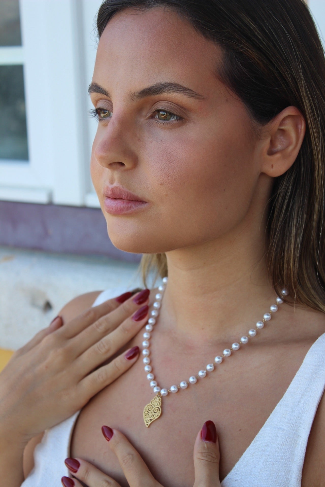 Para preservar a peça, evita o contacto direto com perfumes, cremes ou produtos químicos. Guarda as tuas peças num local seco e limpa-as delicadamente com um pano macio após o uso.