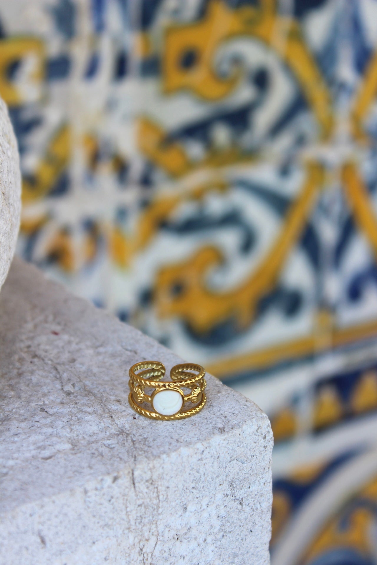 Para preservar a peça, evita o contacto direto com perfumes, cremes ou produtos químicos. Guarda as tuas peças num local seco e limpa-as delicadamente com um pano macio após o uso.