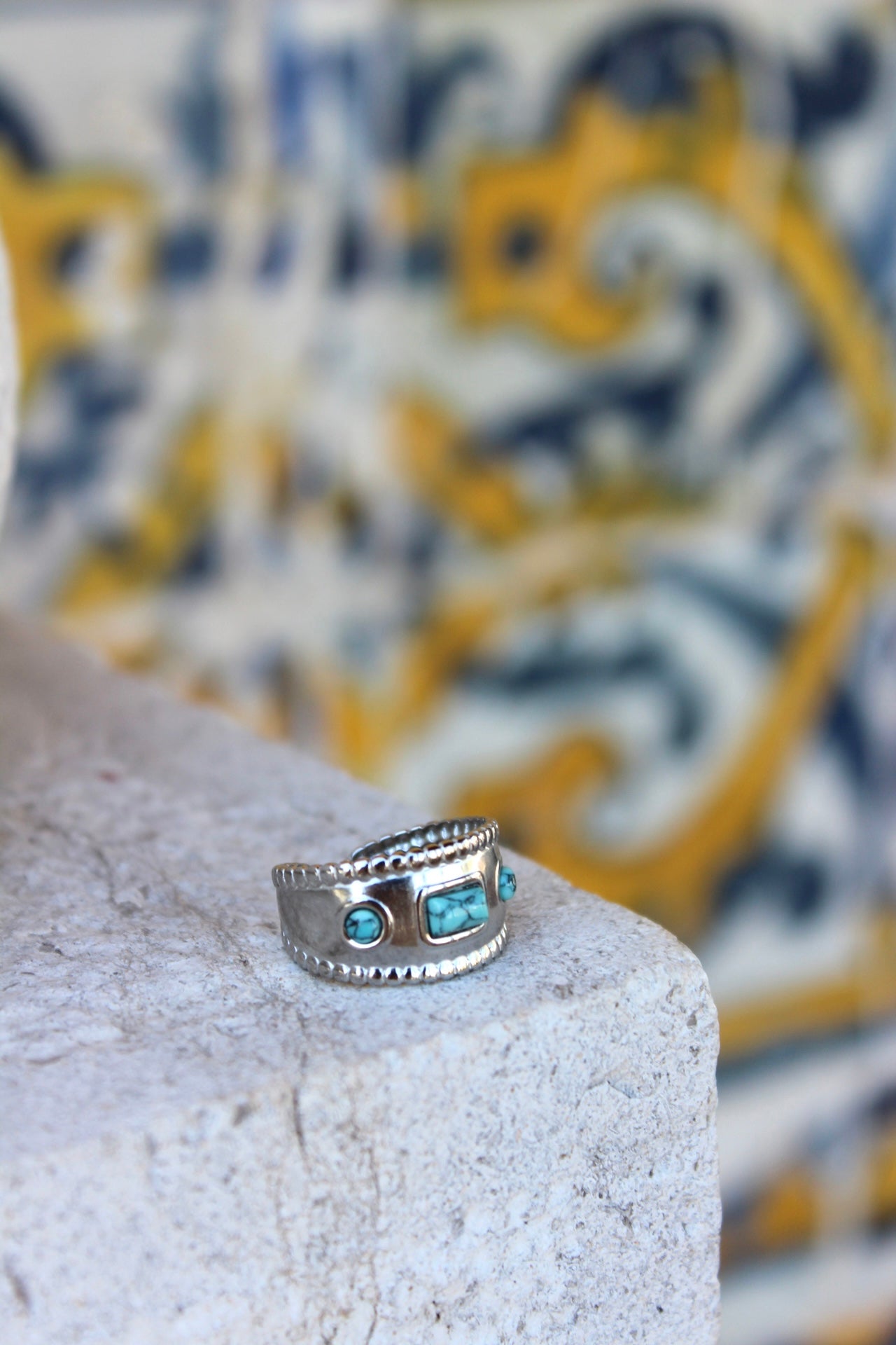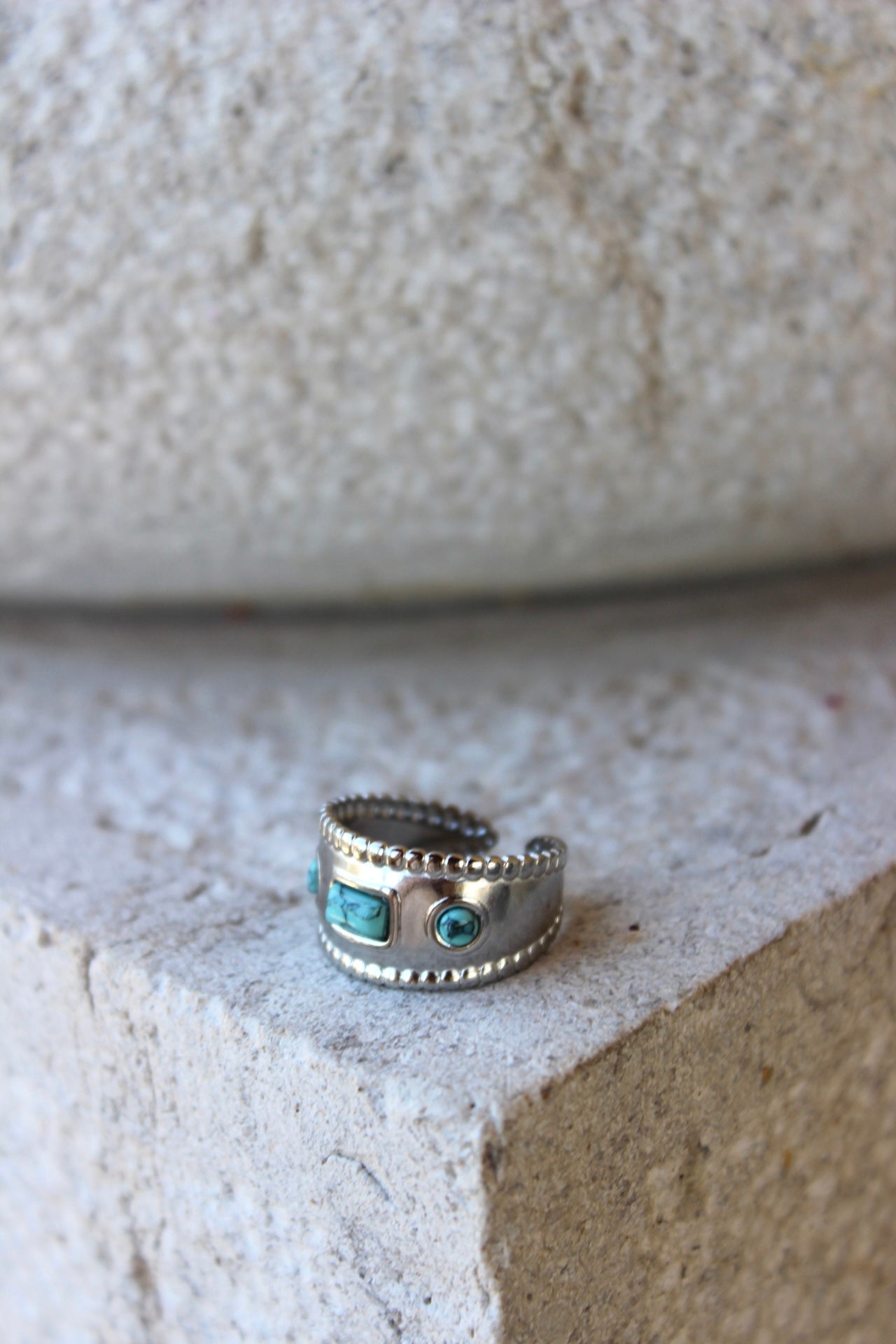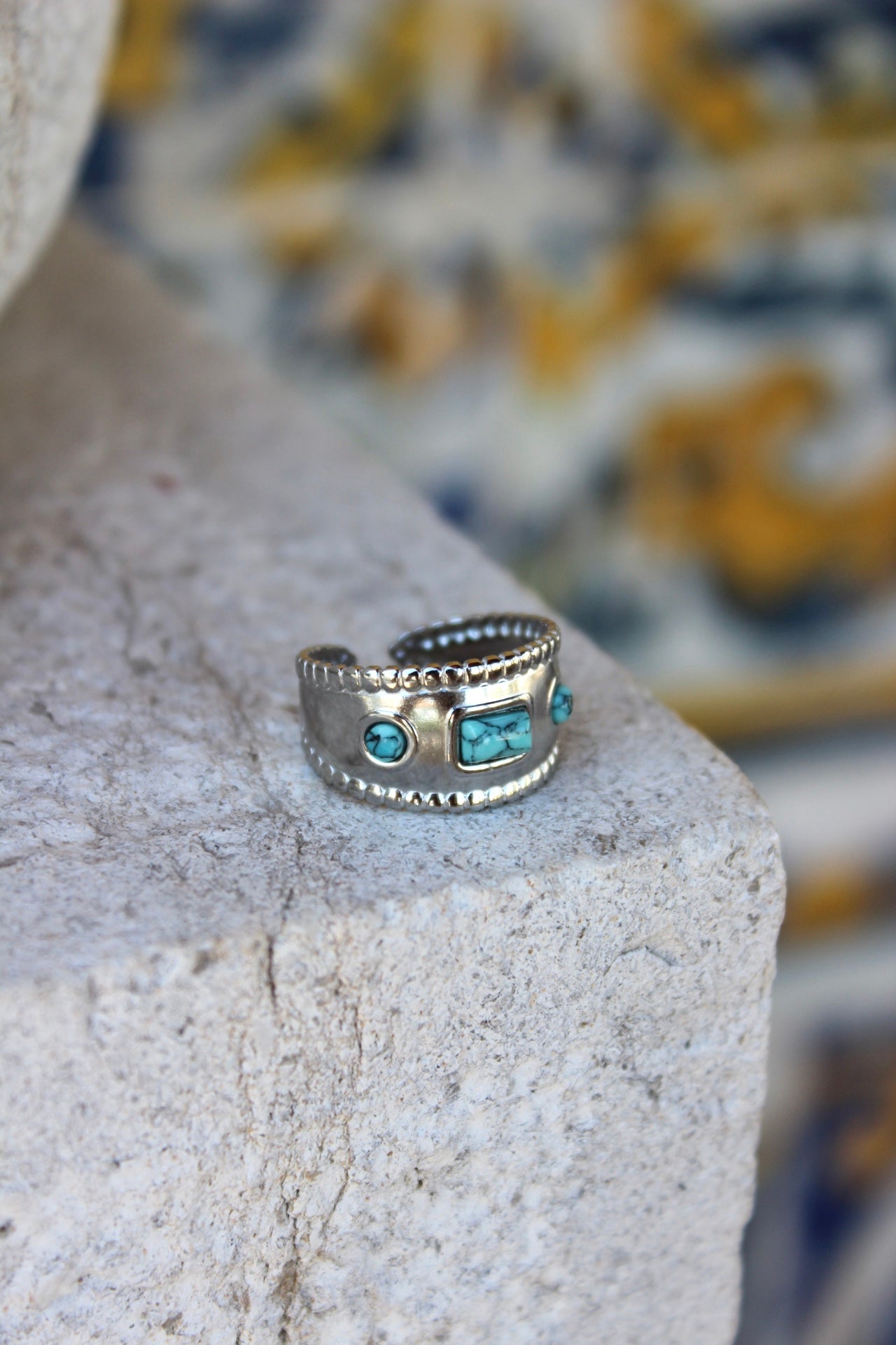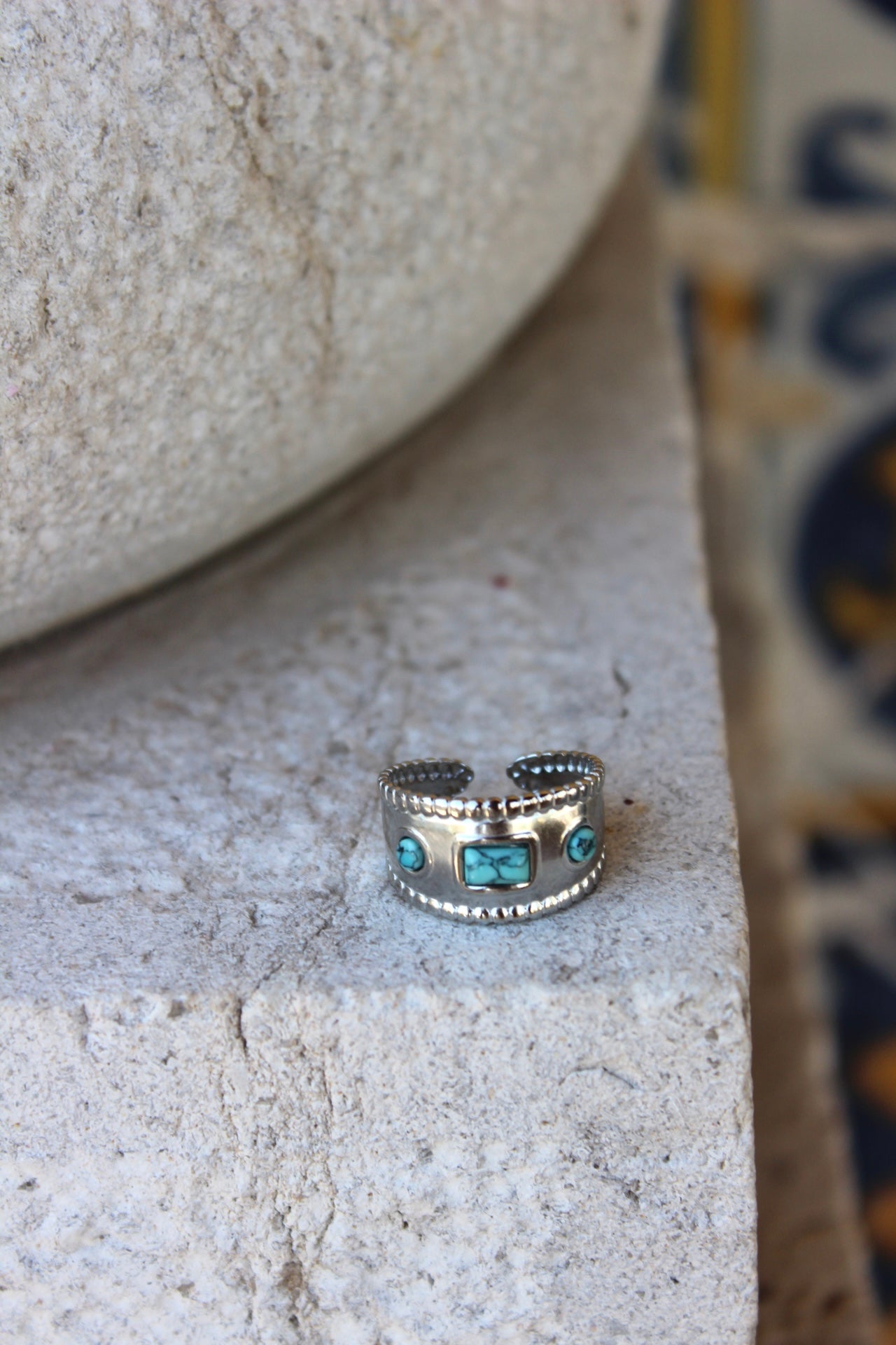Anel Pedra Azul Prateado