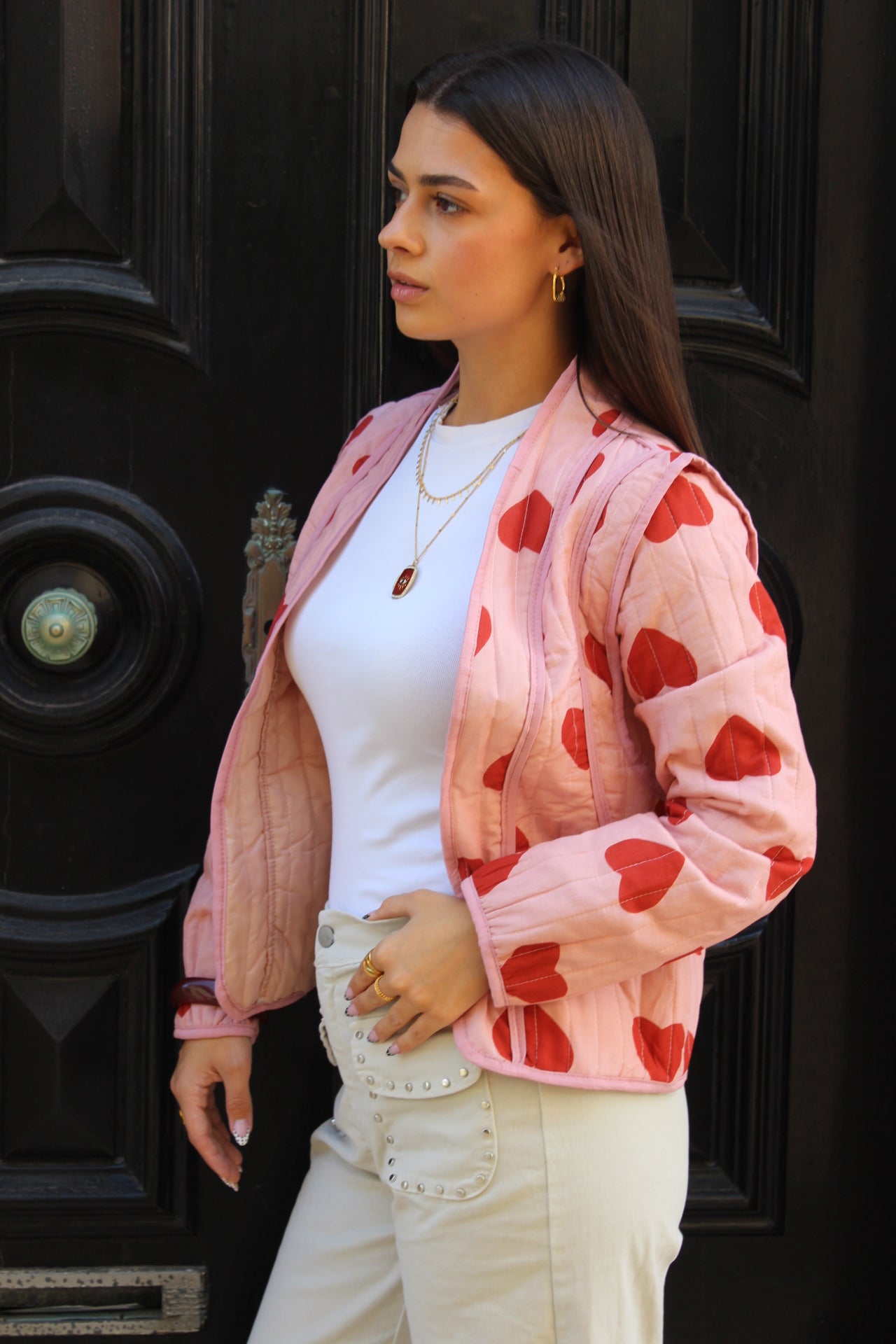 - Bolsos frontais com aplicação de tachas metálicas, um detalhe cheio de estilo