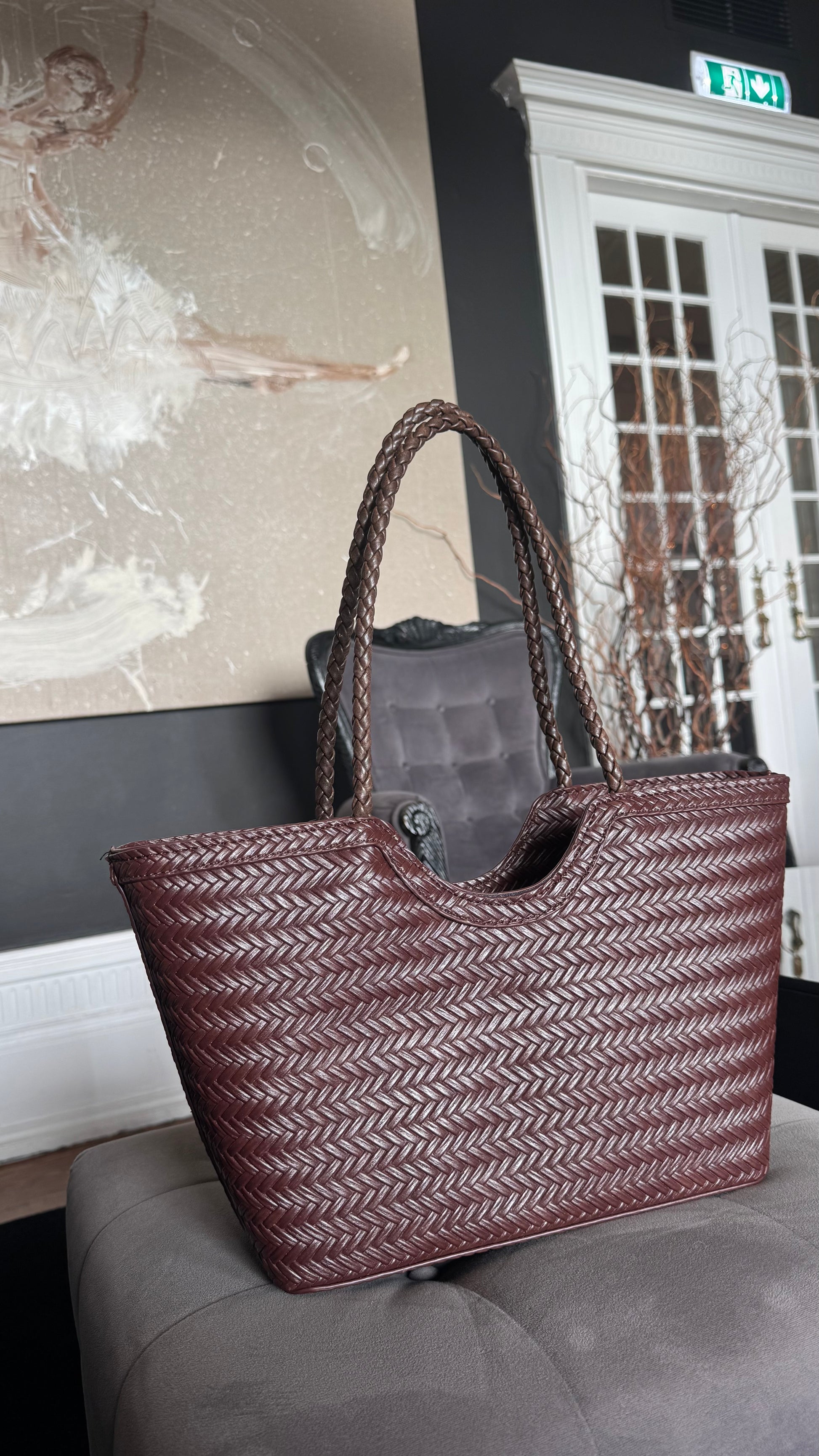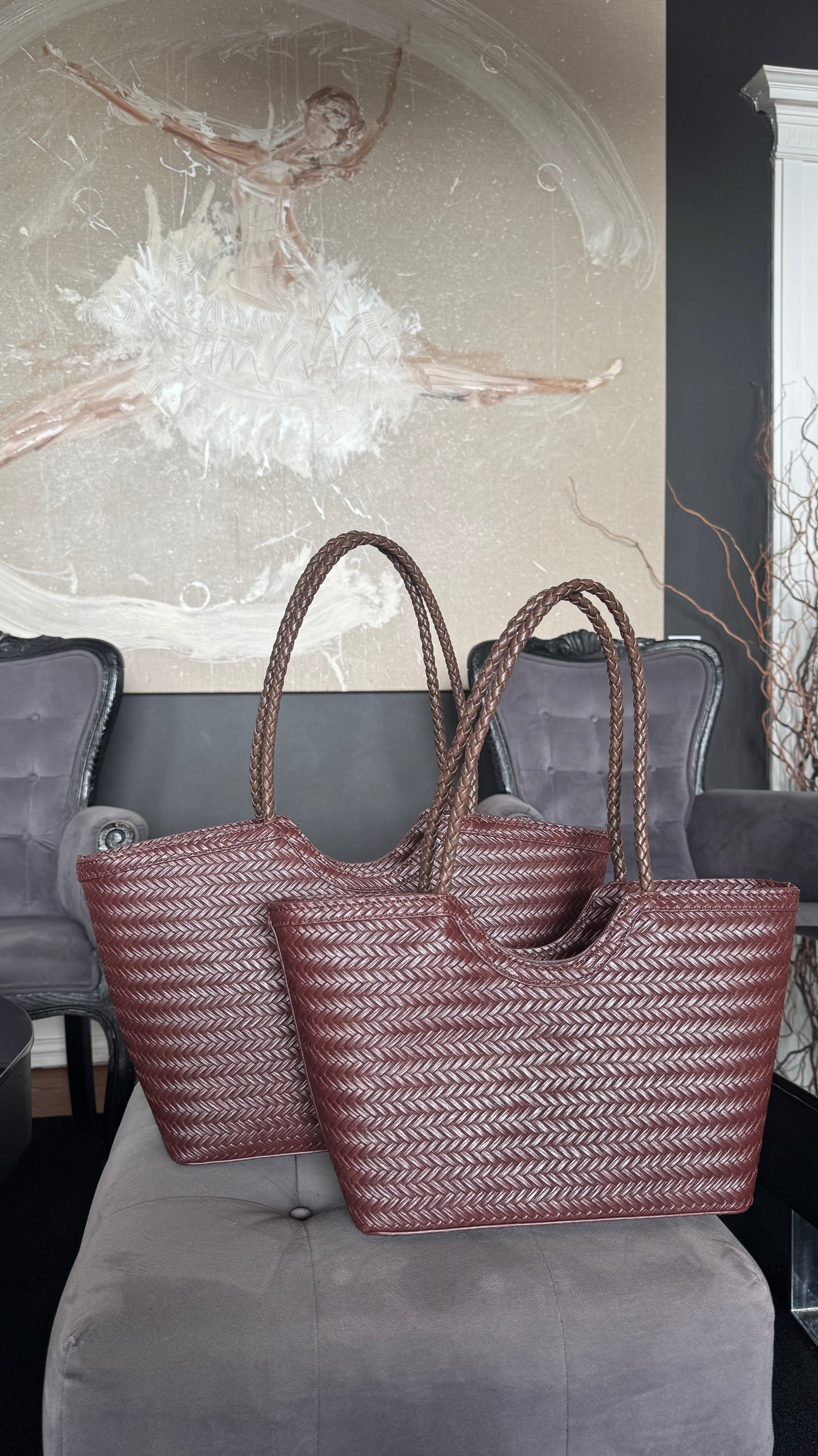 Carteira em design intrecciato, inspirada em estilo “cesta”, disponível em dois tamanhos. No interior, inclui uma bolsa prática para organizar os teus itens essenciais, e uma alça opcional. Leve e versátil, combina textura e estilo, sendo ideal para o dia a dia ou looks mais descontraídos.