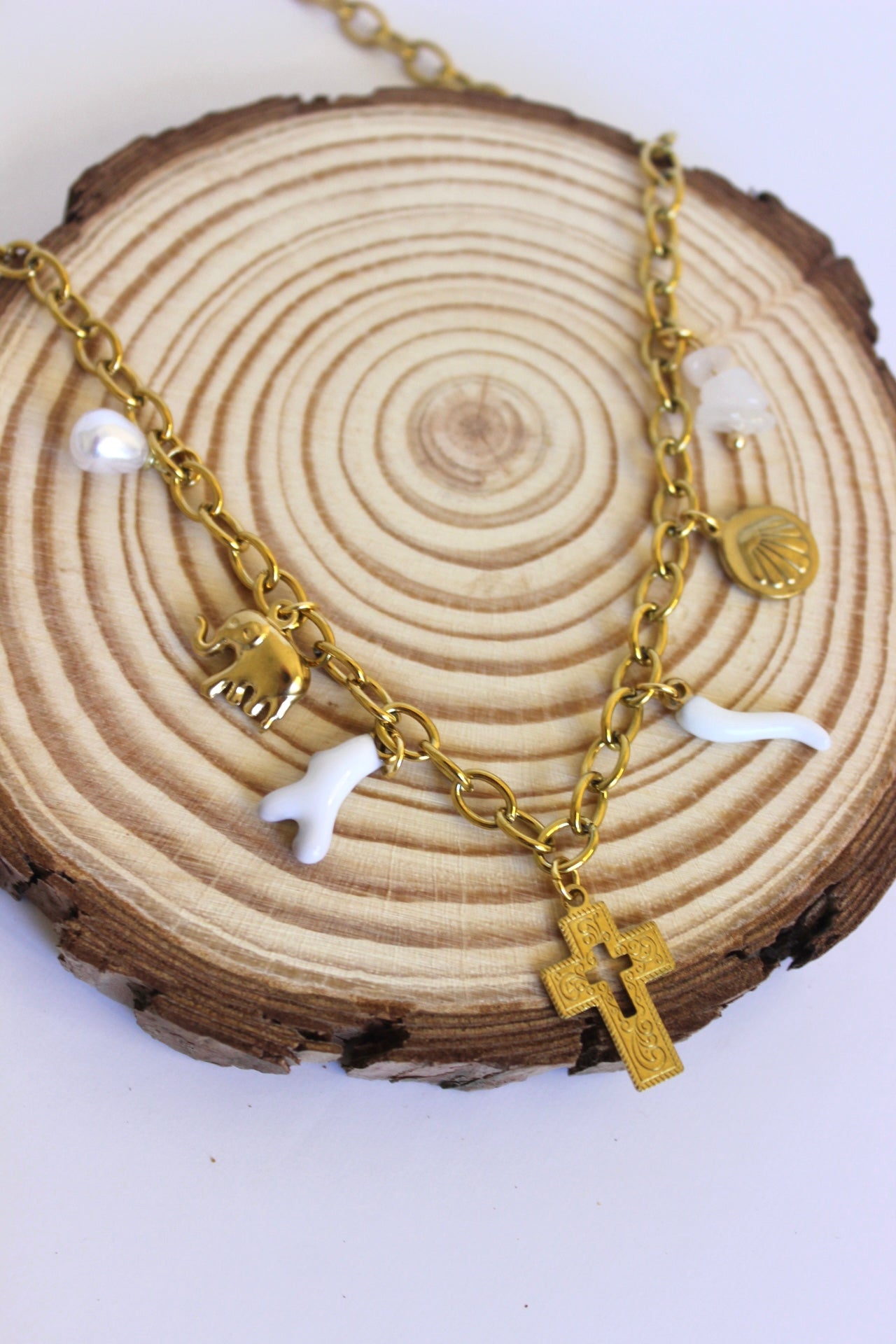 Para preservar a peça, evita o contacto direto com perfumes, cremes ou produtos químicos. Guarda as tuas peças num local seco e limpa-as delicadamente com um pano macio após o uso.