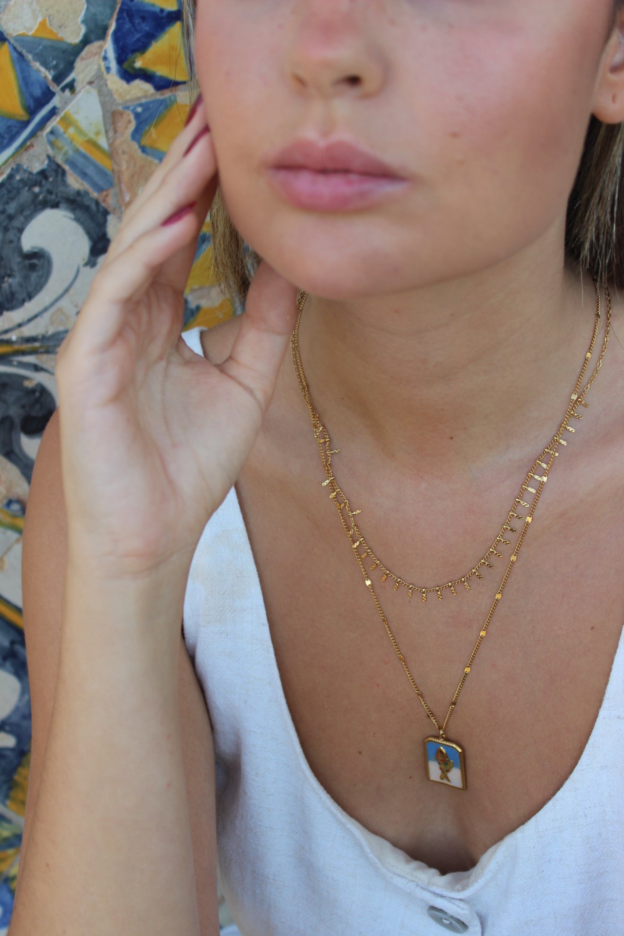 Para preservar a peça, evita o contacto direto com perfumes, cremes ou produtos químicos. Guarda as tuas peças num local seco e limpa-as delicadamente com um pano macio após o uso.