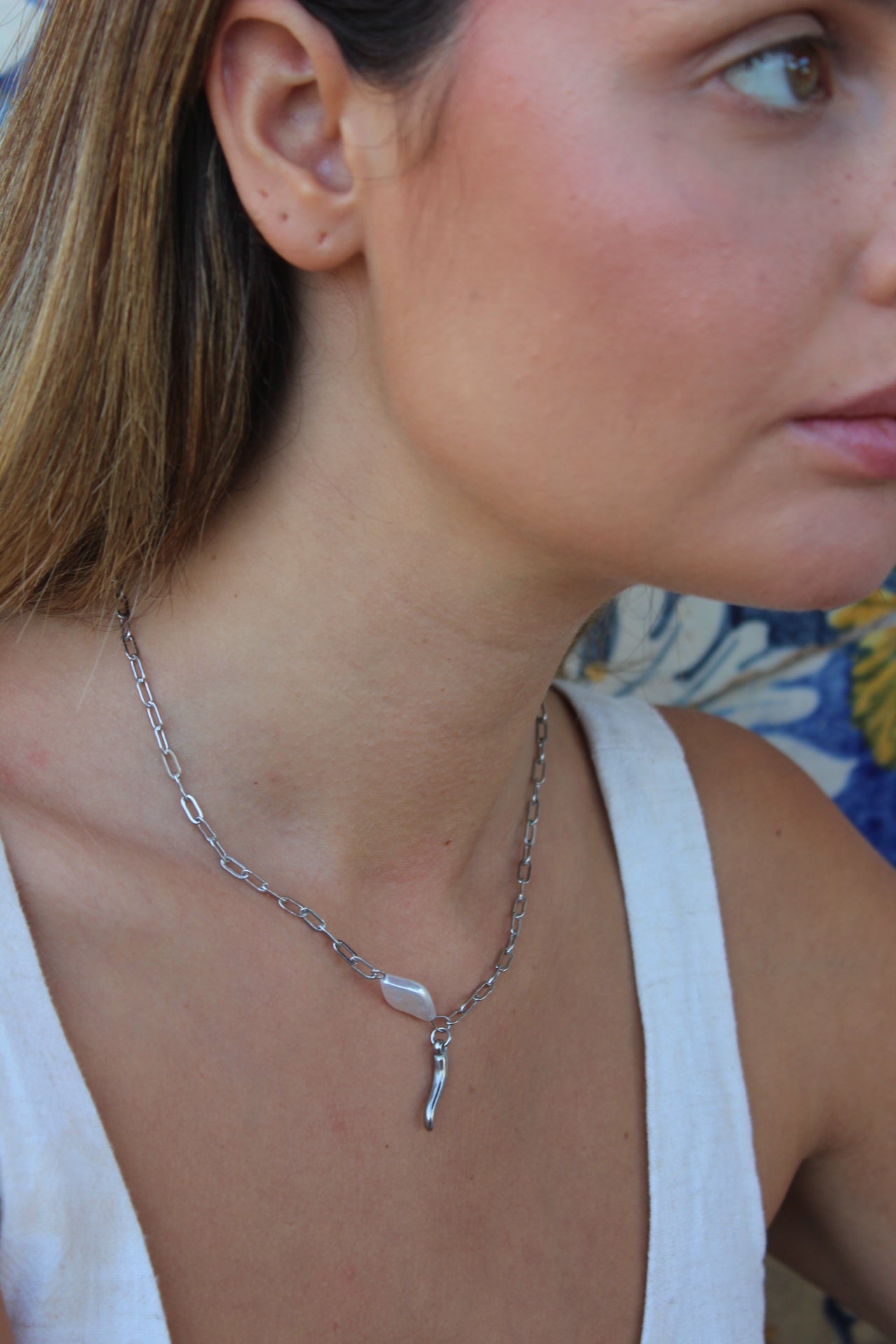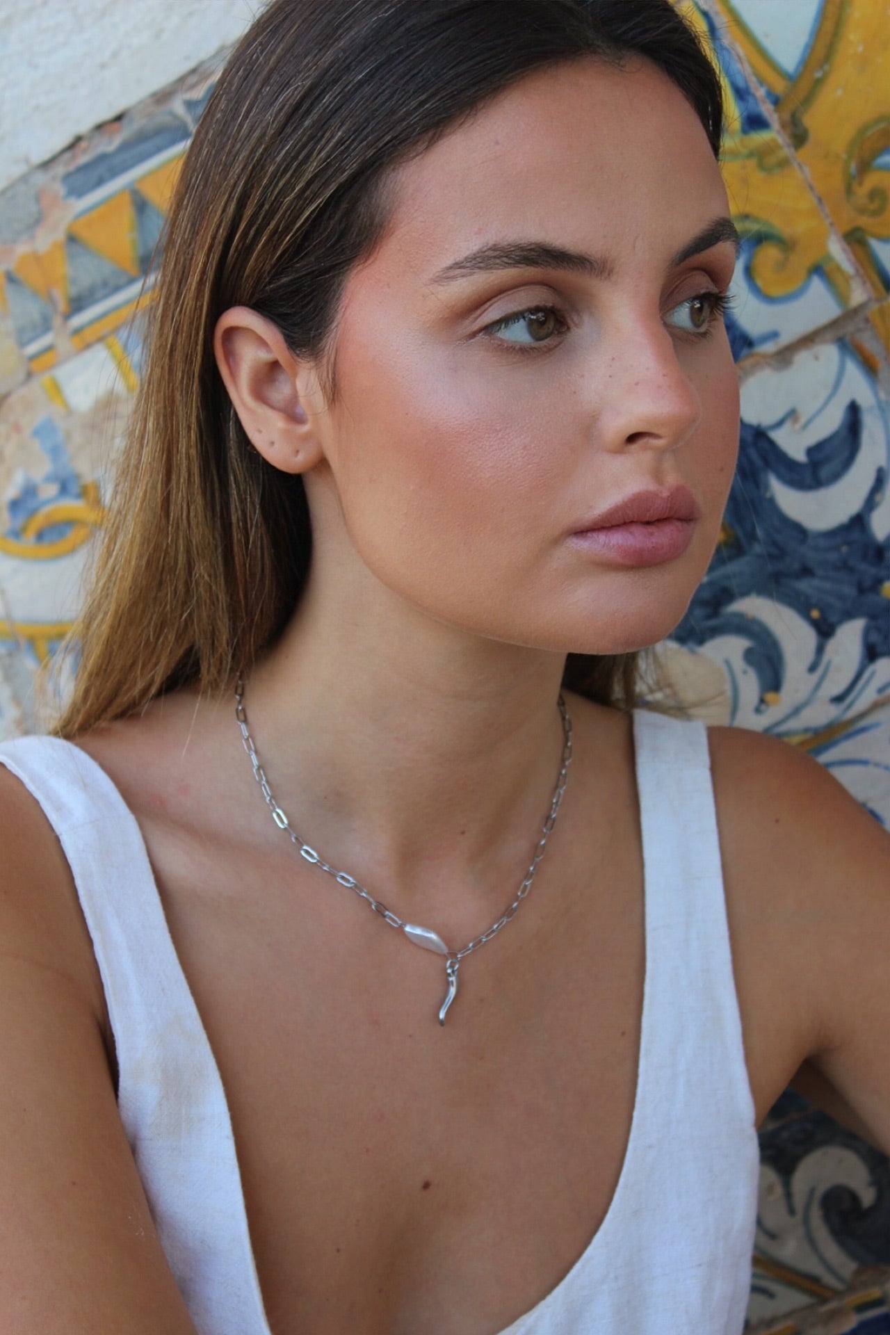 Para preservar a peça, evita o contacto direto com perfumes, cremes ou produtos químicos. Guarda as tuas peças num local seco e limpa-as delicadamente com um pano macio após o uso.
